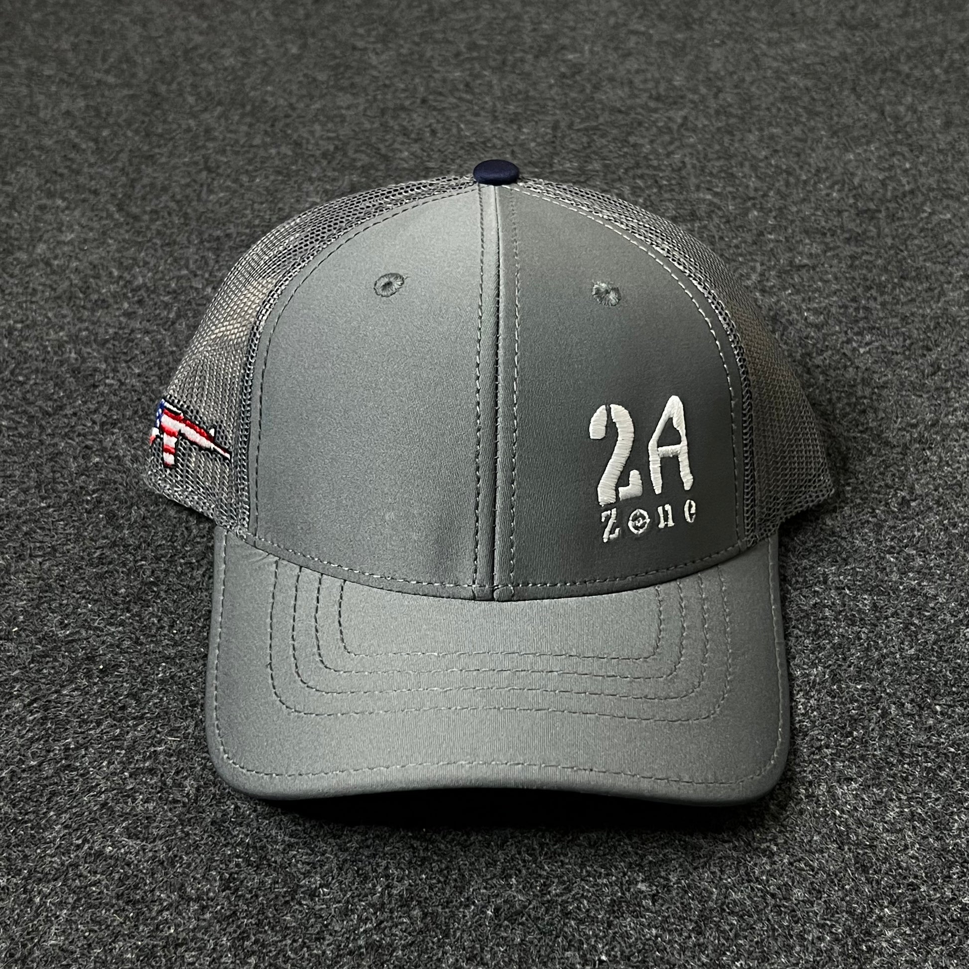 Show your support with the sleek 2A Zone Trucker Hat. Designed in a versatile gray with bold white embroidery, this cap offers both statement style and everyday comfort. Built with a structured crown, breathable mesh back, and adjustable snapback closure, it’s ready for the range, outdoors, or casual wear.