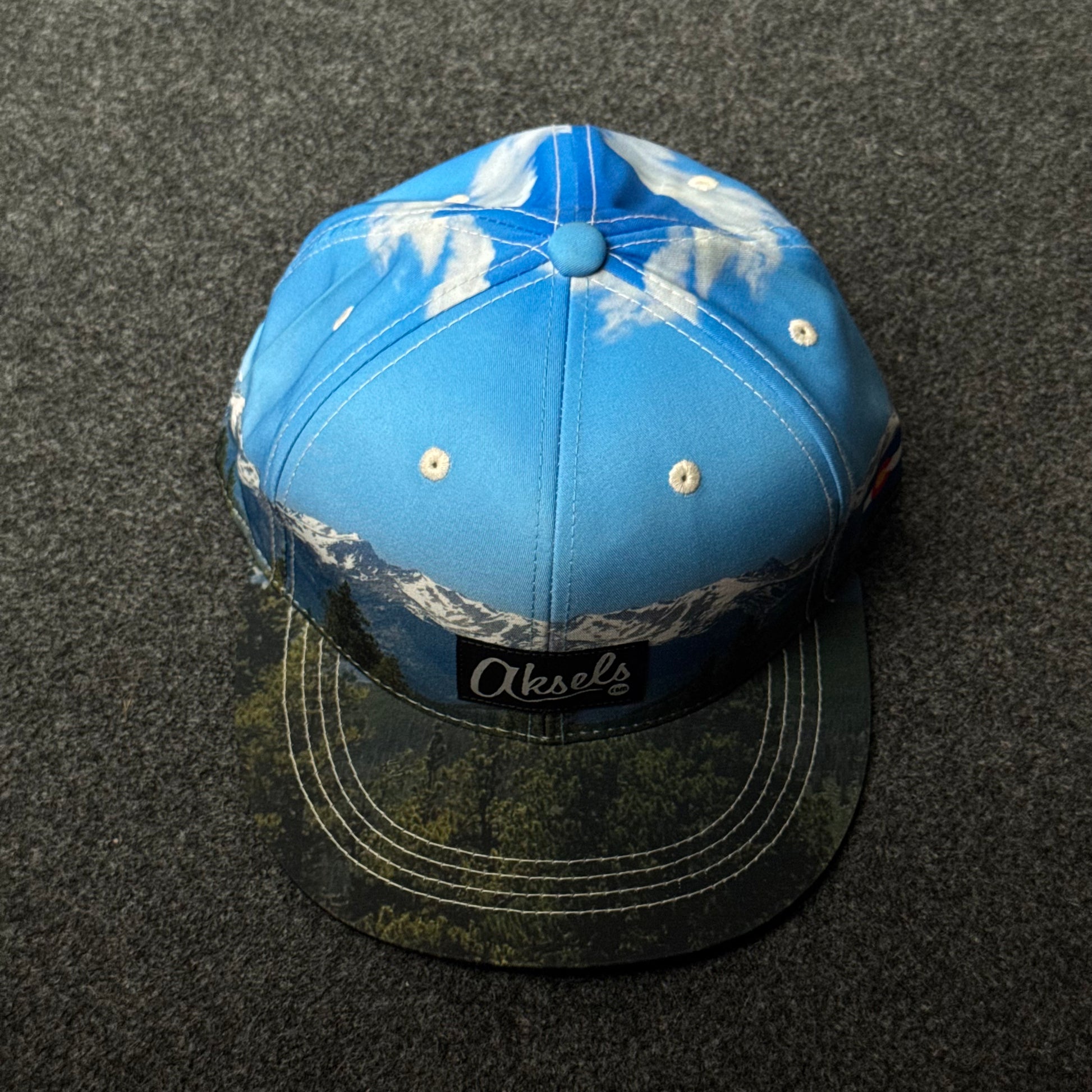 Bring the Rockies to your everyday style with the Aksels Colorado mountain print flat bill cap. This striking hat features an all-over nature photo print of bluebird skies, snowcapped peaks, and lush forests, combined with premium embroidery and authentic Colorado flag details. Finished with a flat brim and custom stitching, it’s made for hikers, travelers, and anyone who wants to wear their love for Colorado outdoors.