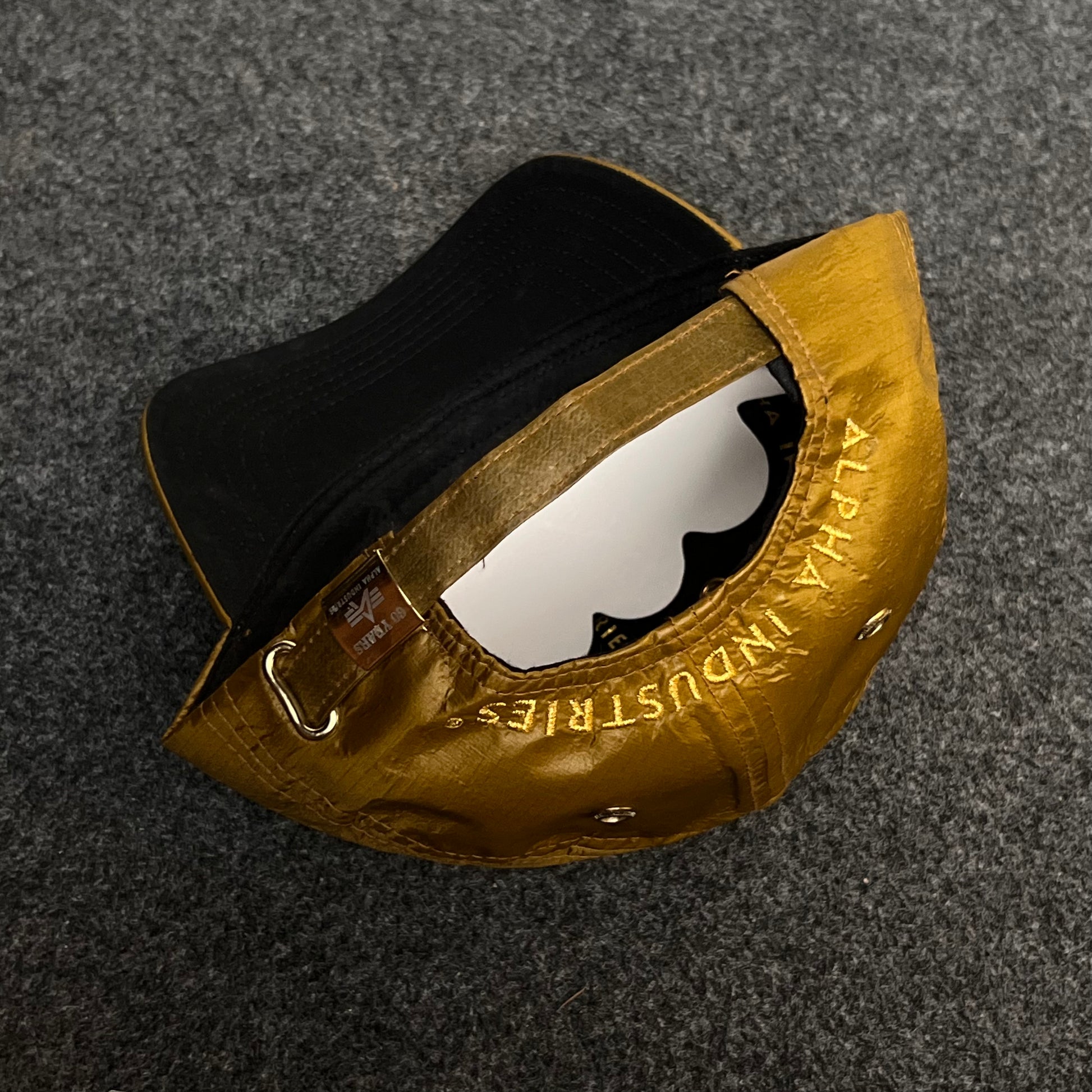 🧢 Structured, satin-textured crown and flat brim in metallic gold