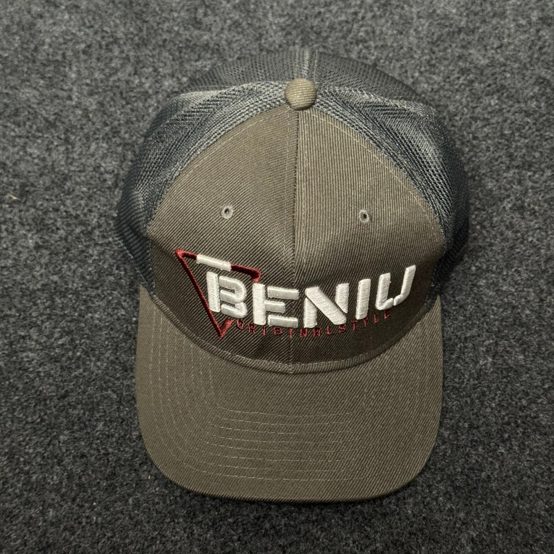 Elevate your street style with the BENIU mesh trucker cap, built for fans of minimal, modern design and everyday comfort. This cap features a structured gray crown with a bold, three-dimensional BENIU logo embroidered in crisp white and deep red, finished with breathable tonal mesh. The flat bill and easy snapback fit make this the ultimate pick for daily wear and personal expression.