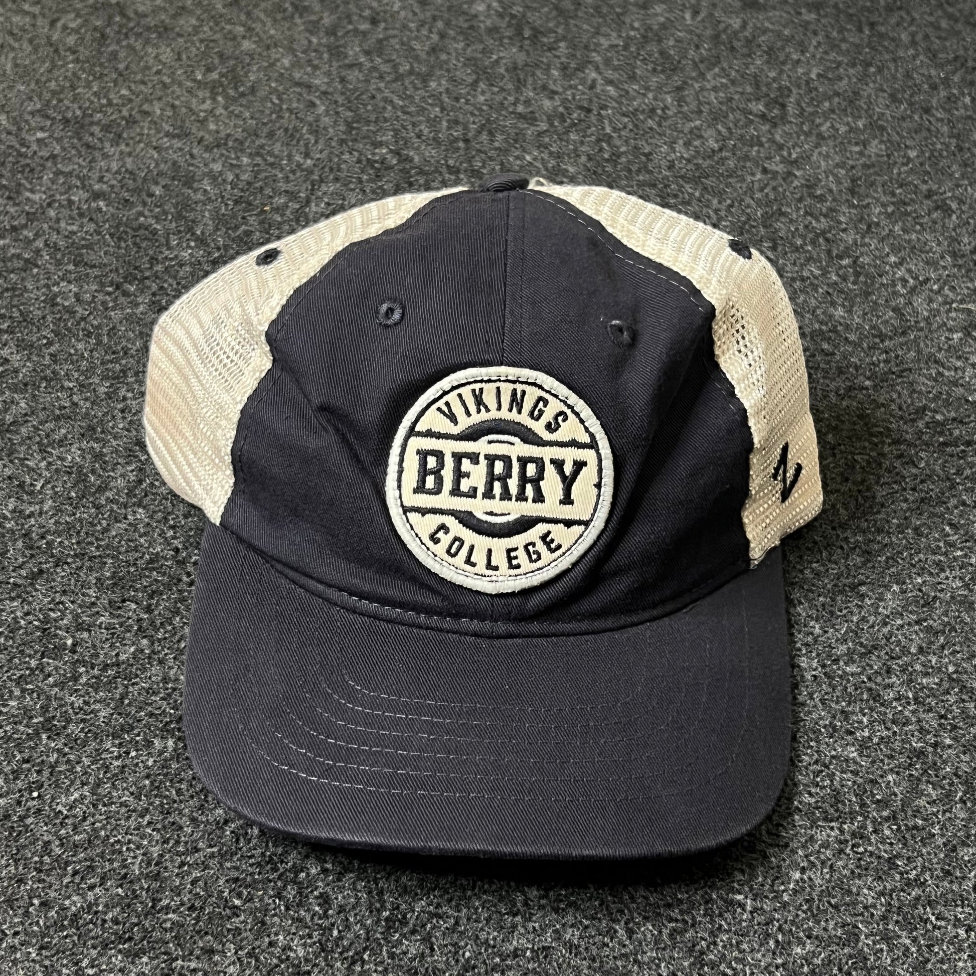Show off your school pride with this Berry College Baseball Hat. Featuring an embroidered “Berry College” circular patch on the front, this cap has a timeless collegiate design. The navy crown with cream mesh back makes it perfect for both campus life and casual everyday wear.