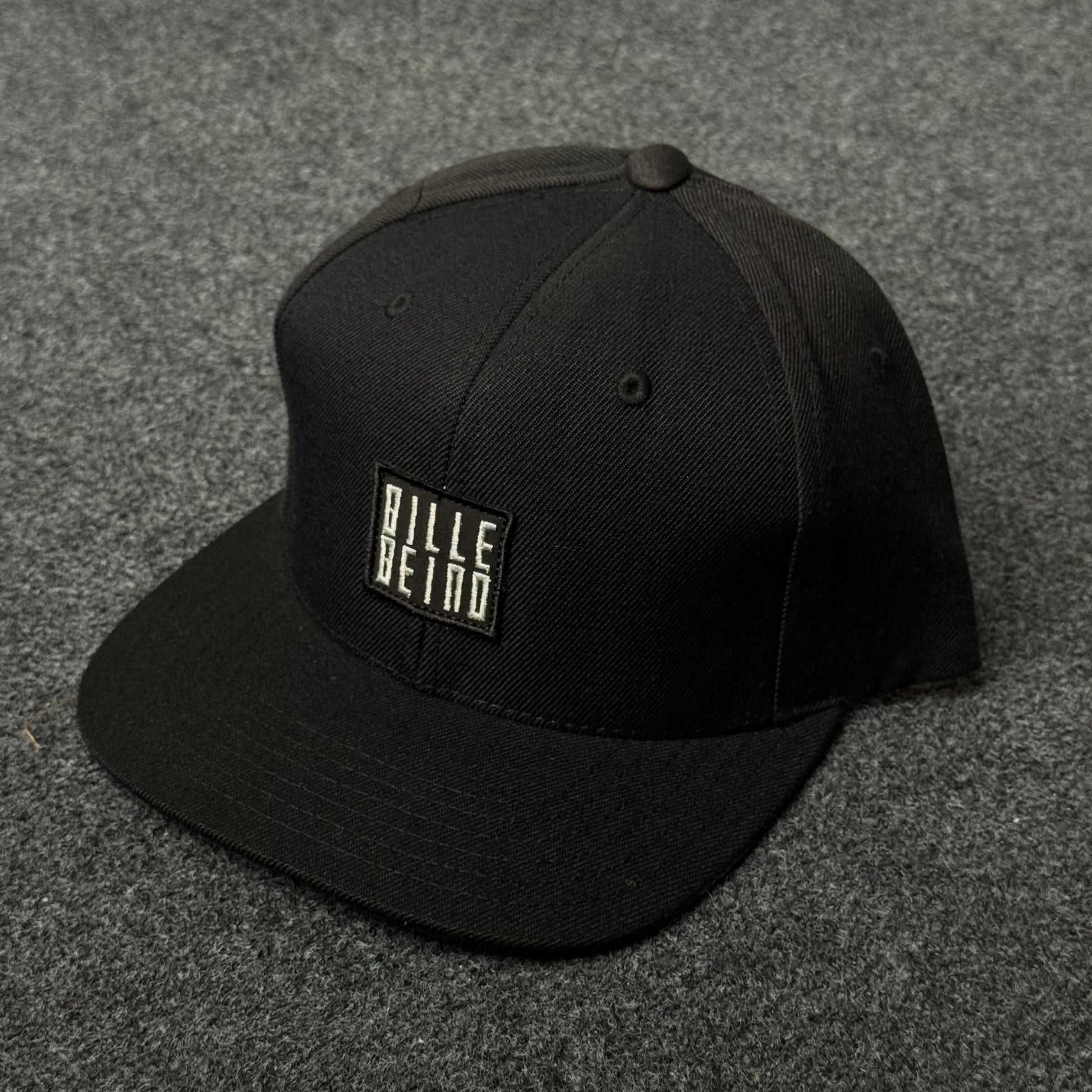Square Bille Beino patch front and center on crisp black panels