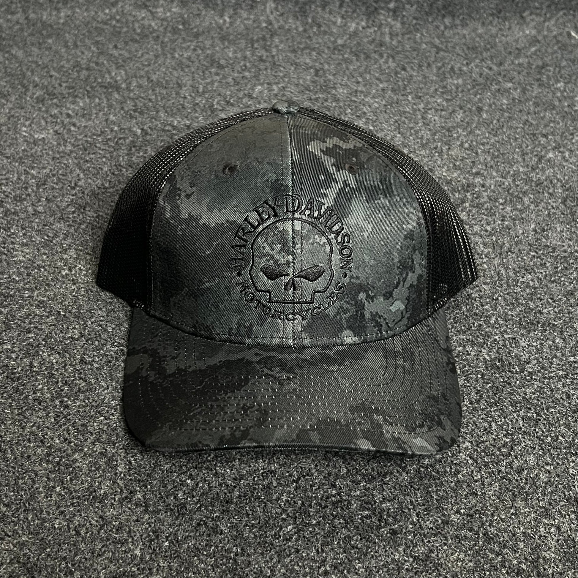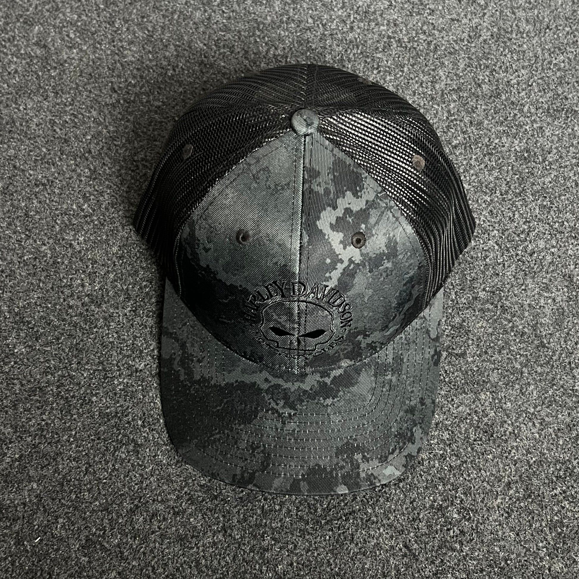 Unleash bold attitude with this black camo trucker cap featuring a stealthy embroidered skull emblem on the front. Designed with a rugged camo crown and brim paired with a breathable black mesh back, it blends streetwear edge with outdoor utility.