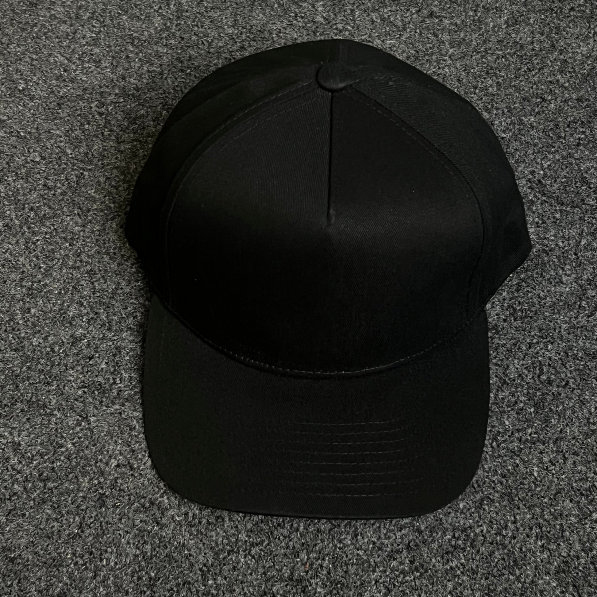 This is a classic "Blank Black Baseball Cap" featuring a solid, all-black design with a structured six-panel build and a curved brim. It’s made from durable material and is ideal for everyday use, custom embroidery, team branding, or promotional events. The timeless, minimalist look suits any casual outfit, making it a popular choice for versatile wear.