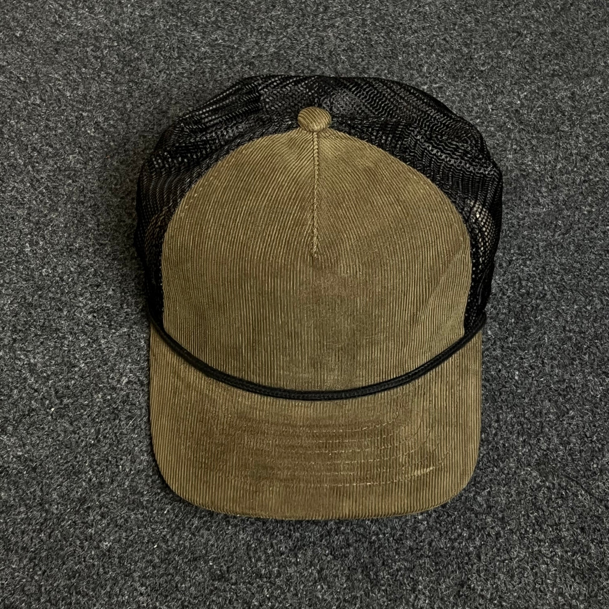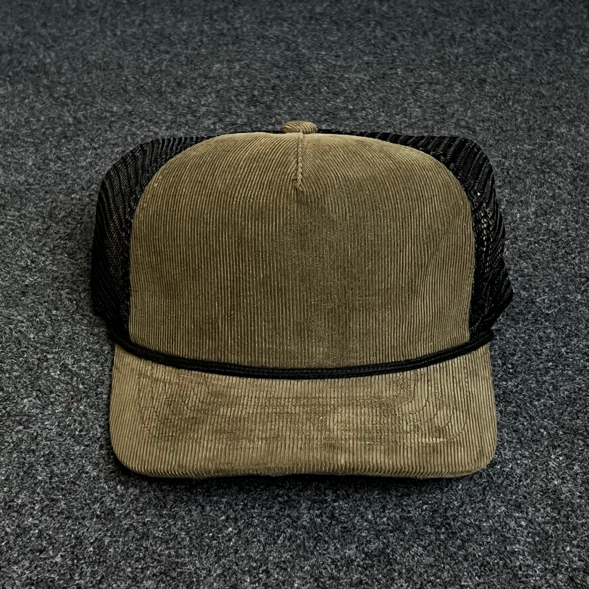 Step up your style with the Blank Brown Corduroy Rope Trucker Hat—timeless corduroy texture, mesh ventilation, and a rope detail for that signature retro vibe.