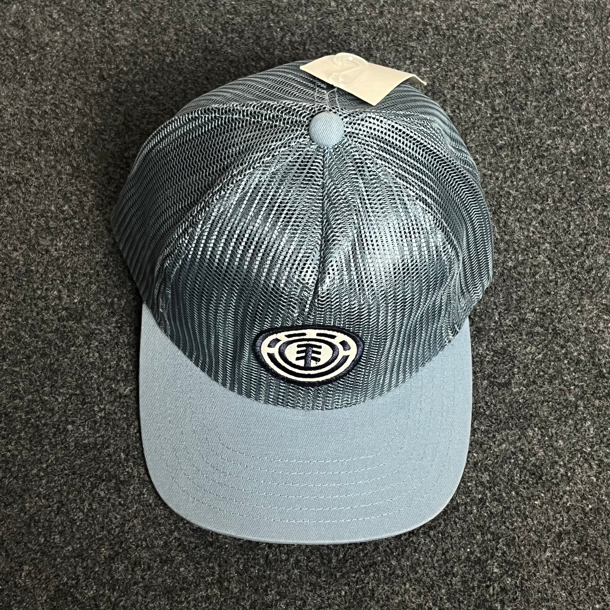A standout trucker cap featuring the iconic Element tree logo patch on a unique blue mesh crown. The light blue flat brim adds contrast, making this cap both stylish and breathable for all-day wear.