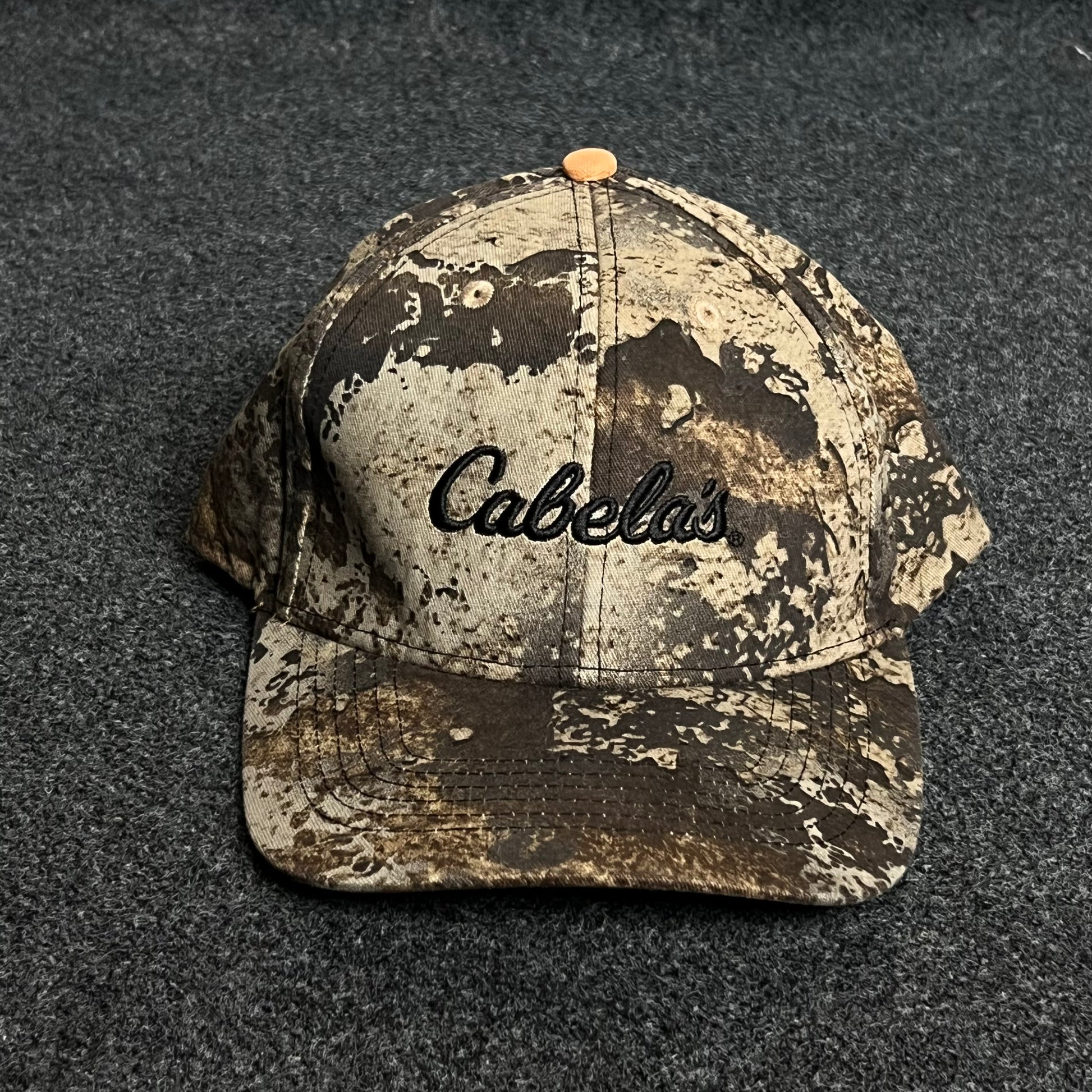 🧵 Black embroidered Cabela’s logo up front
