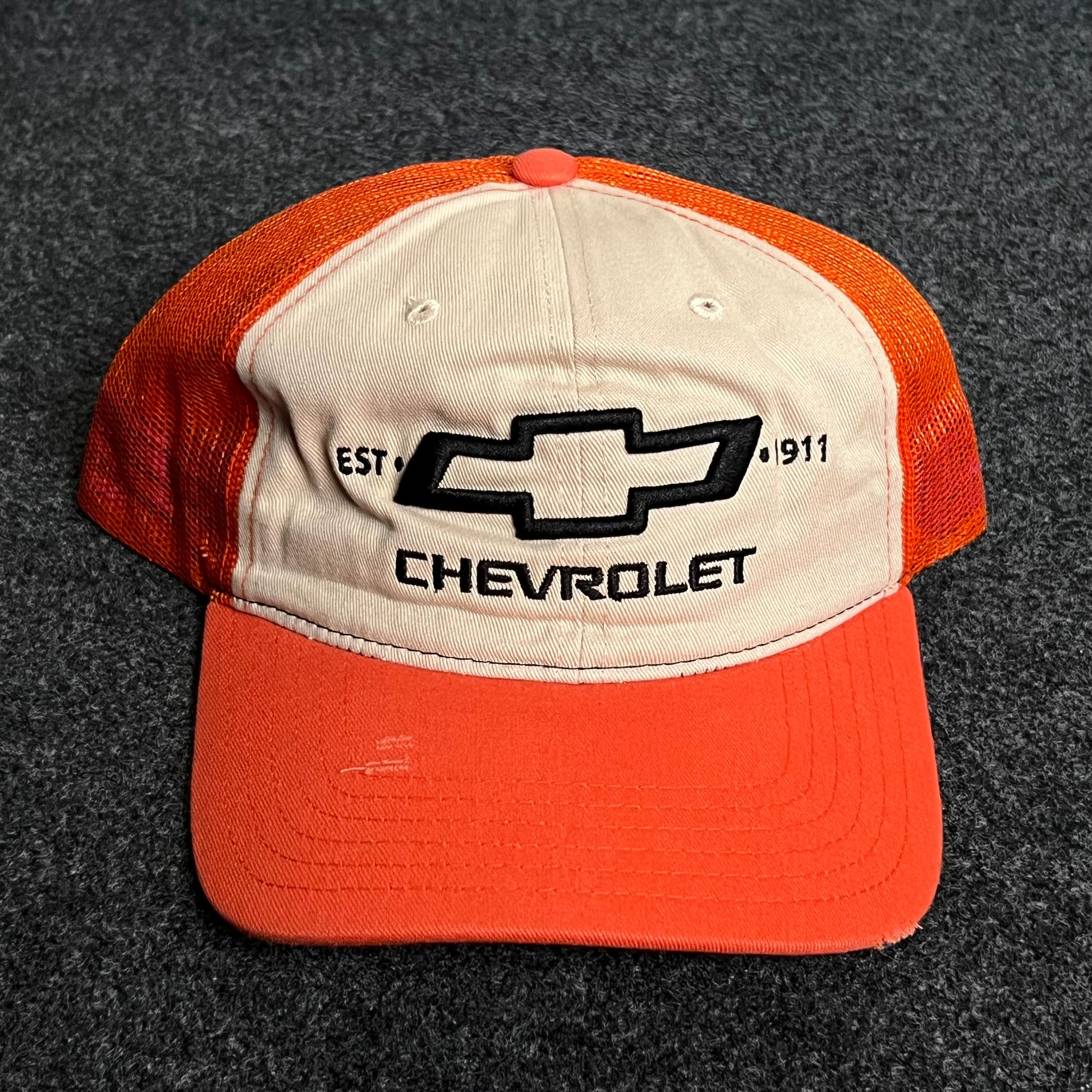 Chevrolet Mesh Trucker Cap – Orange & Cream Snapback Edition