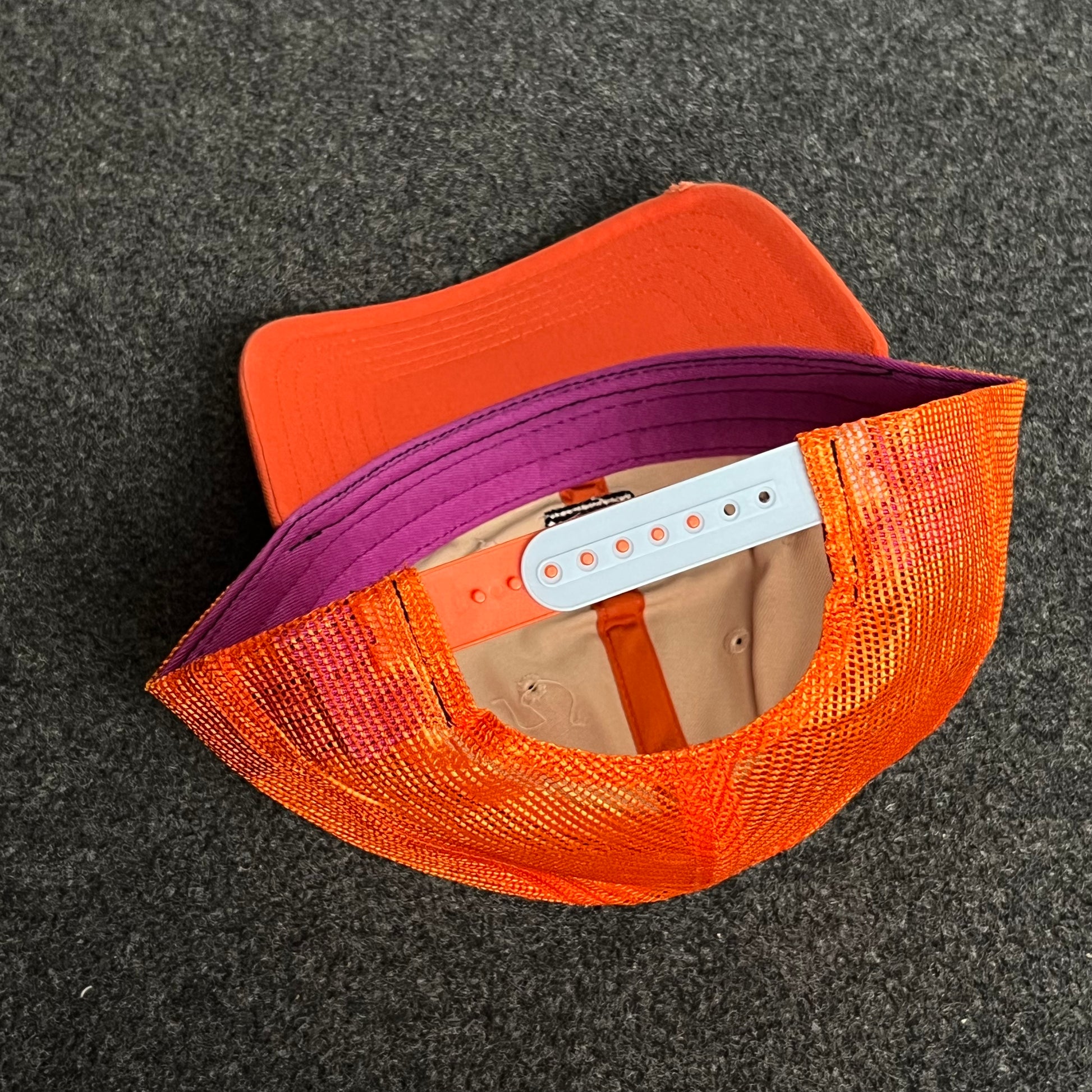 🔒 Adjustable snapback closure with unique purple interior detail