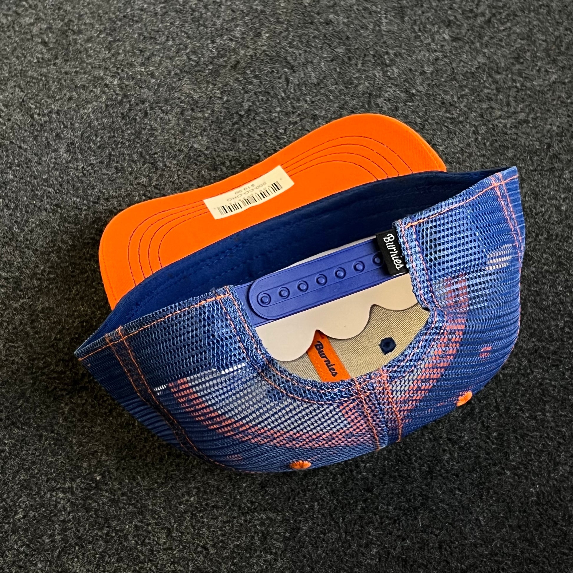 ✔ Royal blue mesh back and sides, highlighted with orange stitching and accents