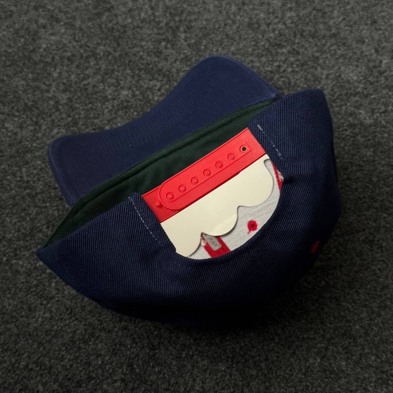 🟦 Classic six-panel, structured crown with pre-curved bill