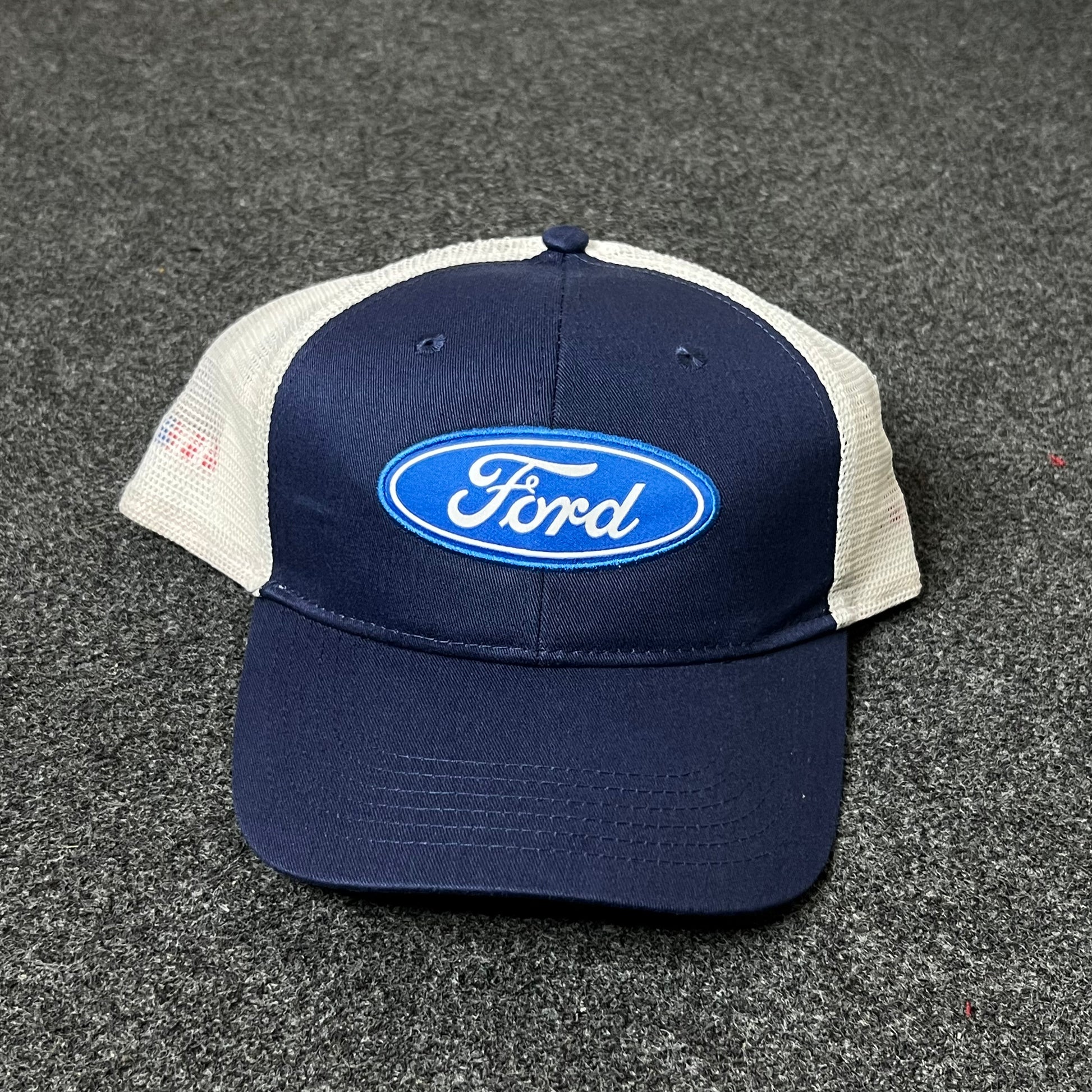 Show off your Ford pride with this classic trucker hat featuring the iconic blue oval logo. Designed with a navy structured crown, breathable white mesh backing, and adjustable snapback fit, this cap is perfect for car enthusiasts, collectors, and everyday wear.