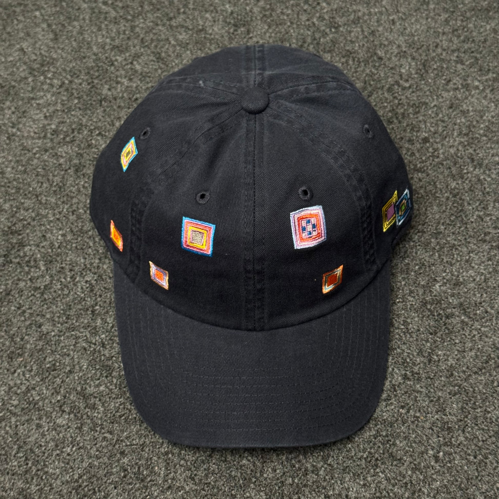 The Art-House "Kaleidoscope" Embroidered Cap is a vibrant, abstract piece that transforms a classic silhouette into a wearable canvas. This design abandons traditional logos in favor of a playful, scattered geometric pattern that feels both handcrafted and modern.