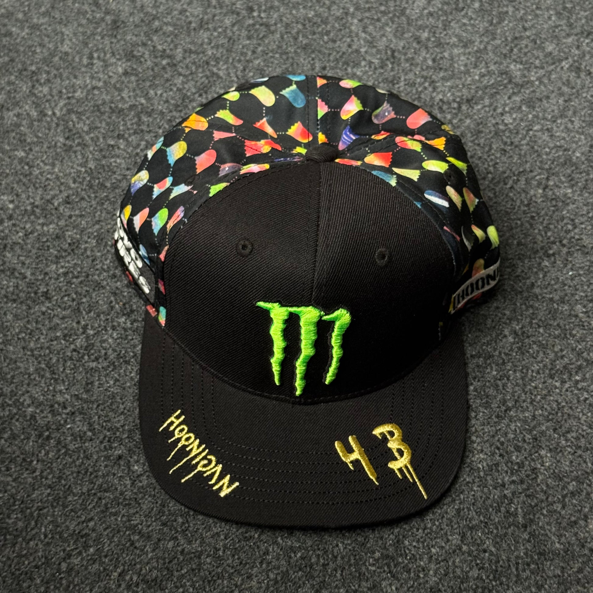 Unleash high-octane attitude with the Monster Energy flat bill cap, blending racing heritage and bold street style. The black structured snapback is fronted by the iconic neon green Monster “M” claw logo, with signature Ken Block “43” and stylized graphics accenting the brim and back. Energy drink fans, motorsport lovers, and collectors alike will love the vibrant, adrenaline-fueled design.