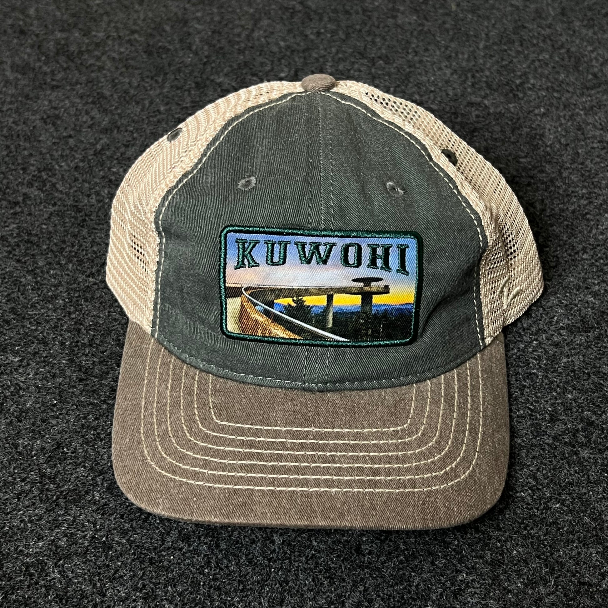 Kuwahi Scenic Trucker Hat β Vintage Washed Green & Brown Mesh Cap