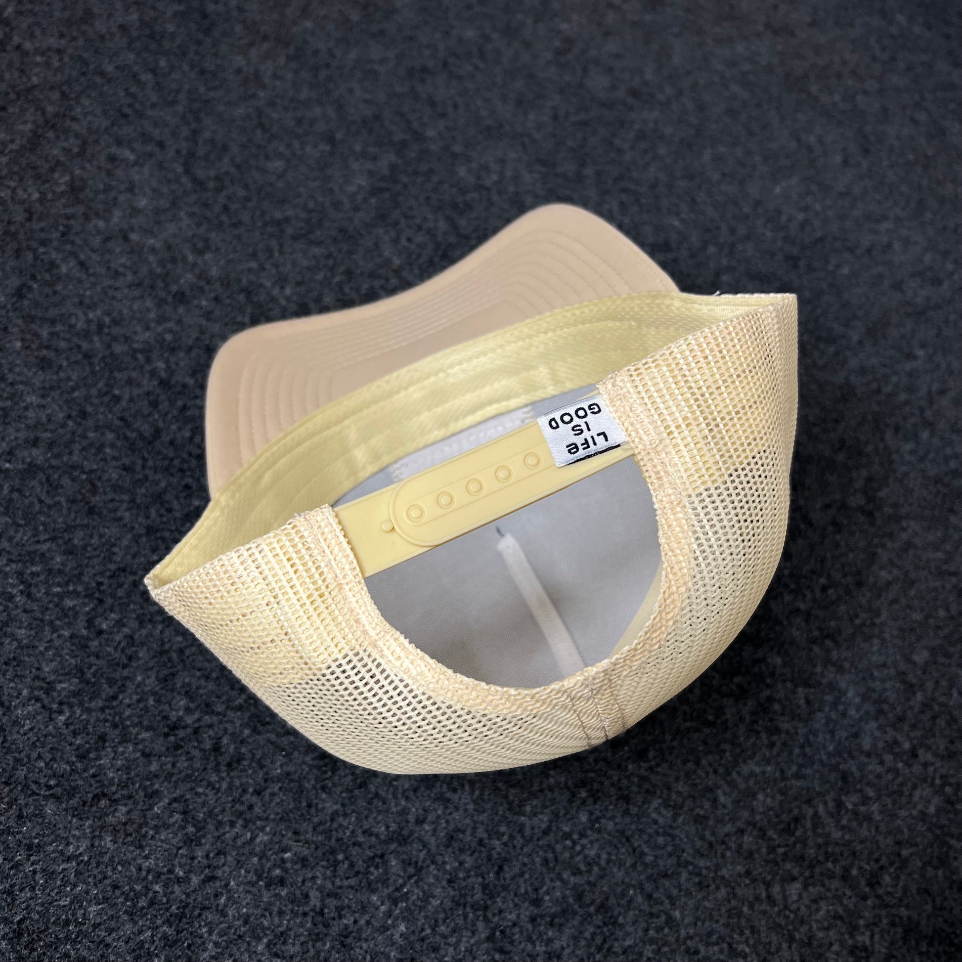 🧢 Neutral beige crown with breathable mesh back