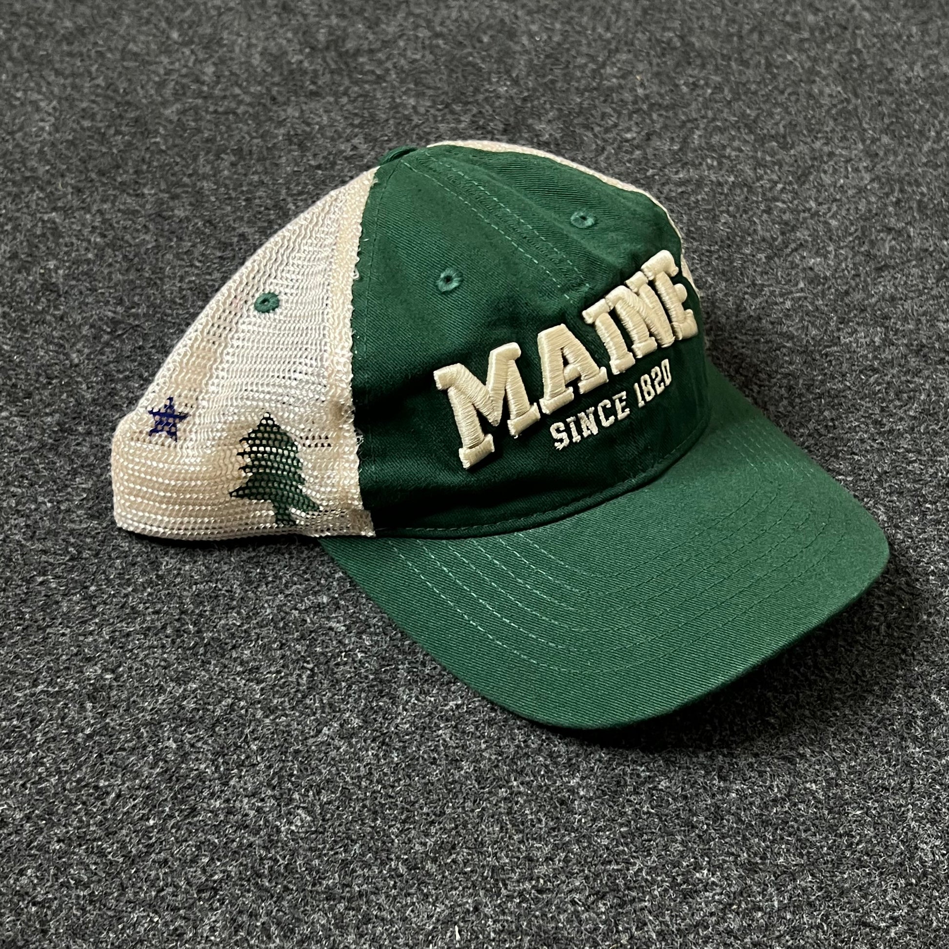 Celebrate your Maine pride with this classic trucker hat. Featuring bold embroidered “MAINE” text and “Since 1920” detail, this cap combines timeless collegiate style with breathable comfort. The green crown and bill paired with a white mesh back make it a versatile piece for casual wear, outdoor adventures, or game day spirit.
