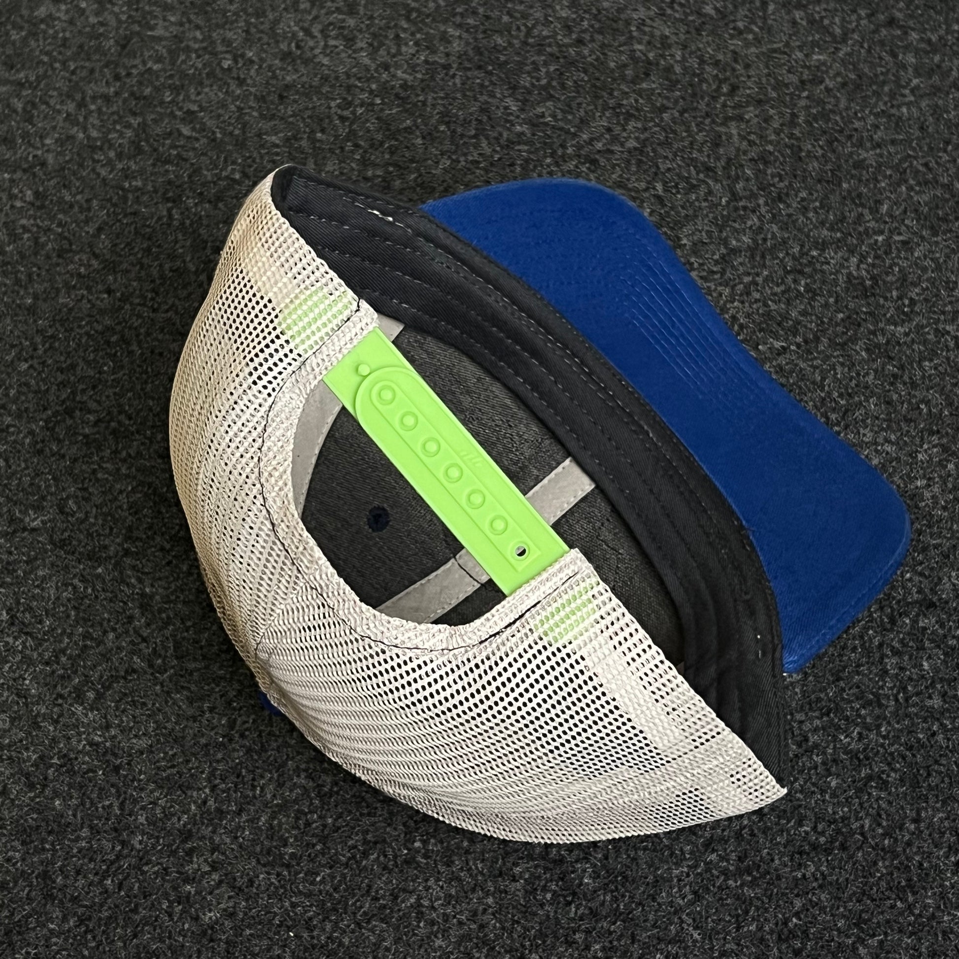 🧢 Navy front, royal blue visor and top button, white mesh sides/back