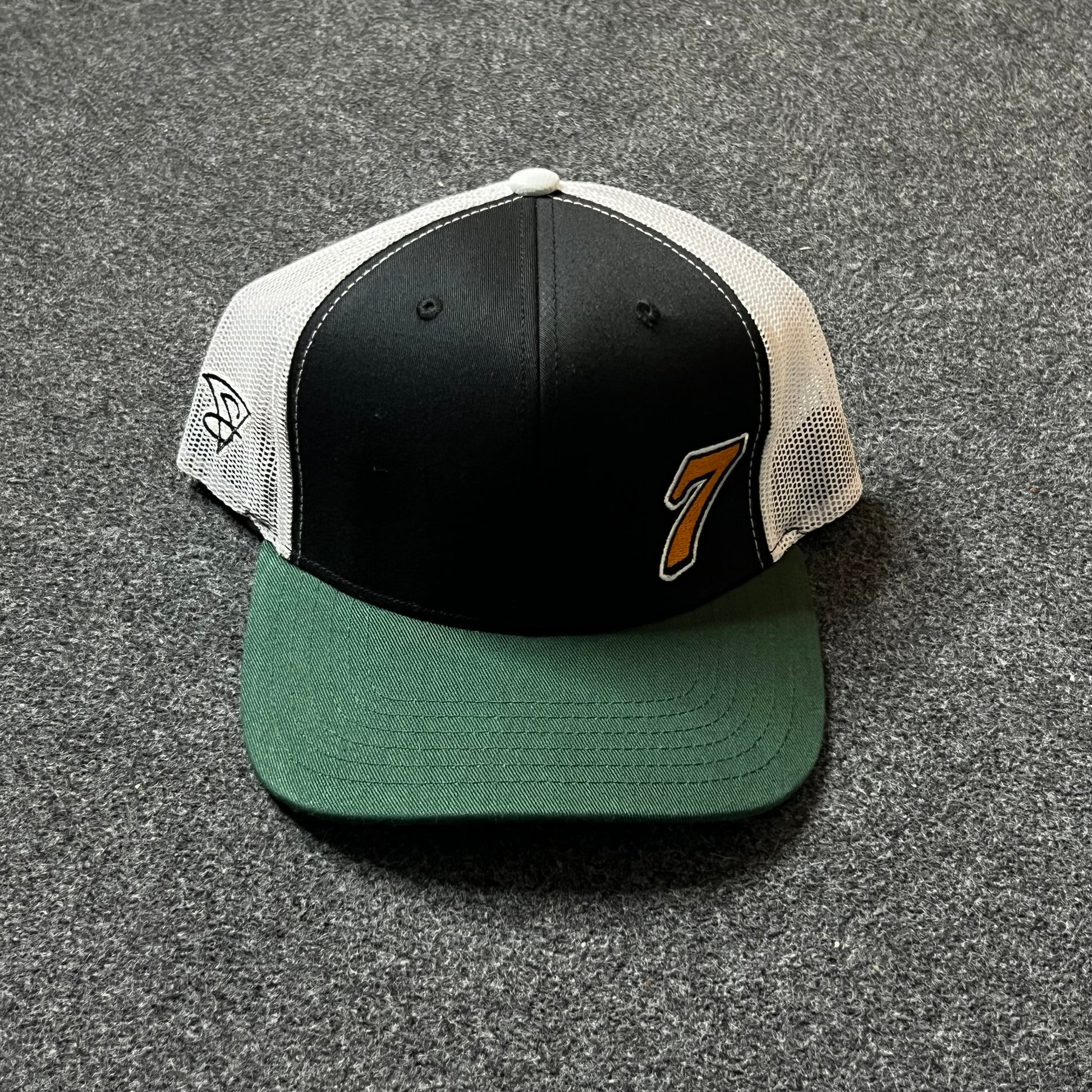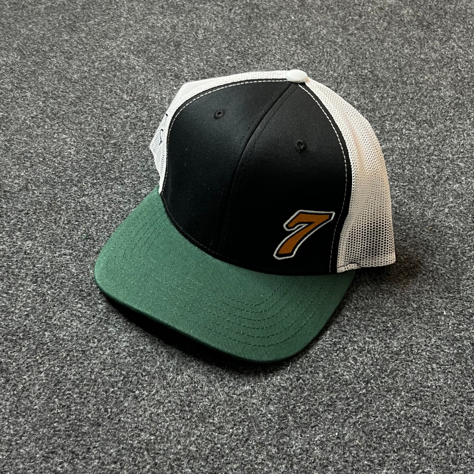 Number 7 Trucker Hat – Black, White & Green Mesh Snapback