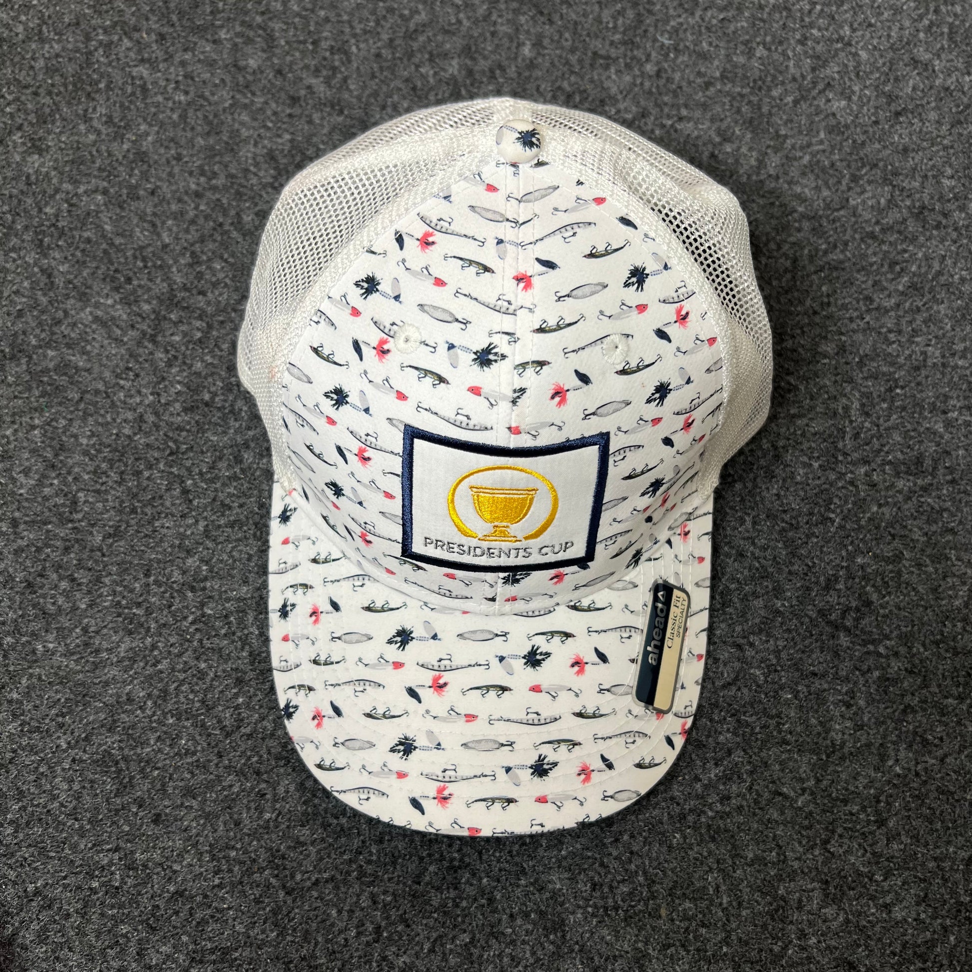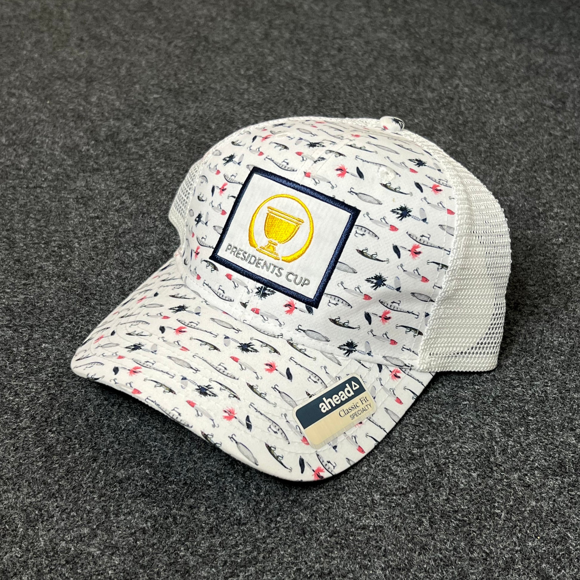 Presidents Cup Patterned Mesh Back Trucker Hat – White