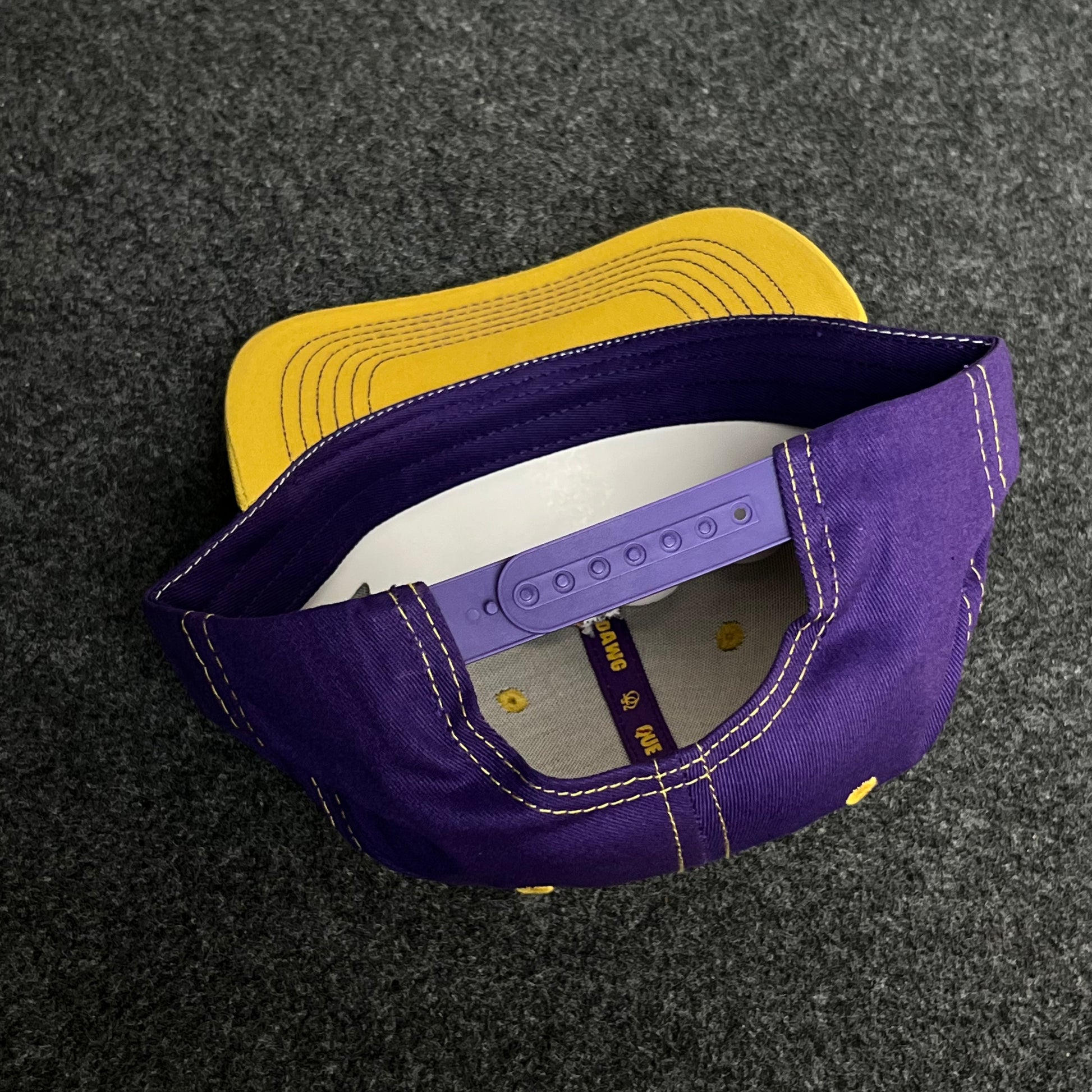Purple, White & Gold "Que Dawg" Bulldog Mascot Retro Cap