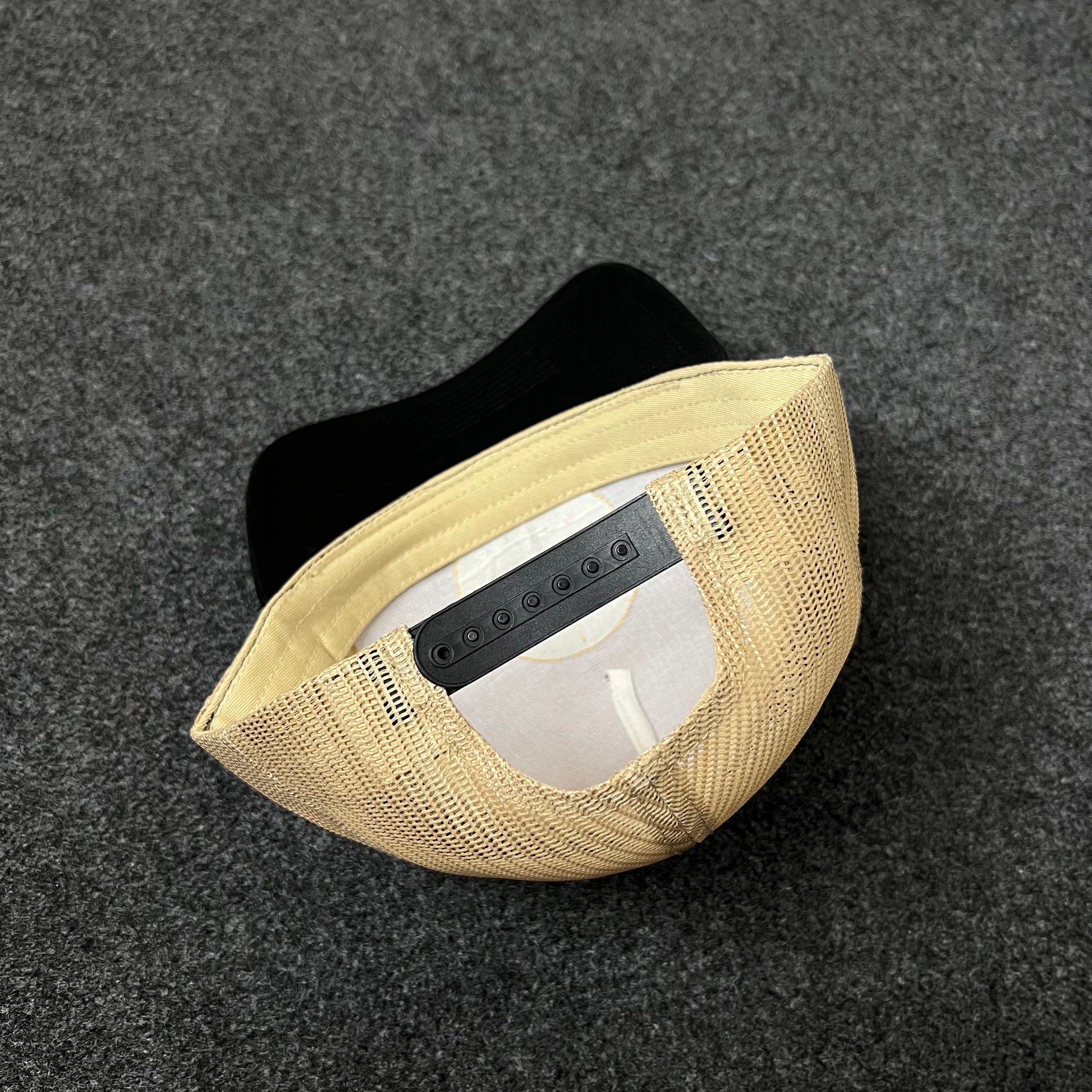 🎨 Camo crown with a sleek black brim and tan mesh back