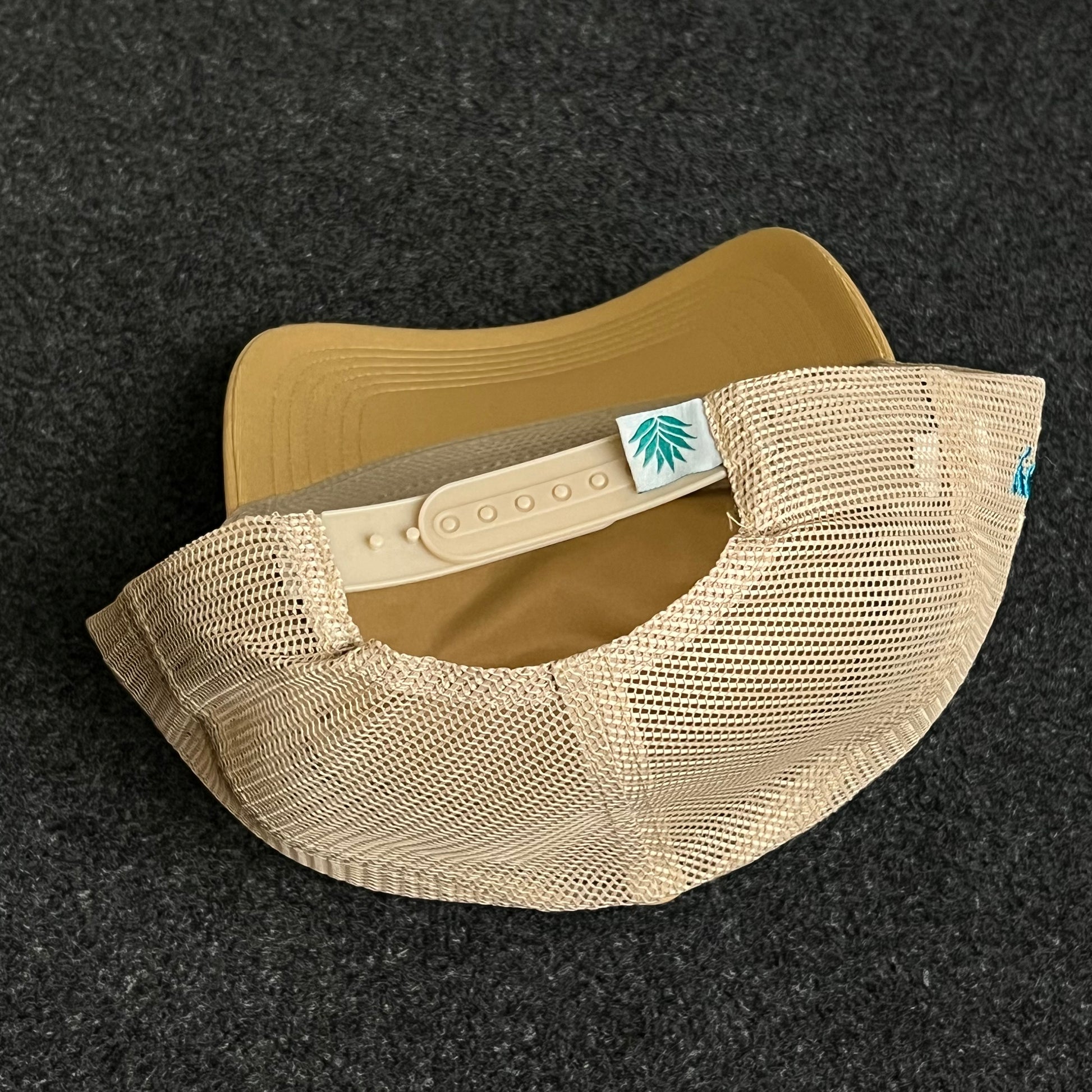 🧢 Foam front panel in tan with bold raised "COWBOY HAT" embroidery