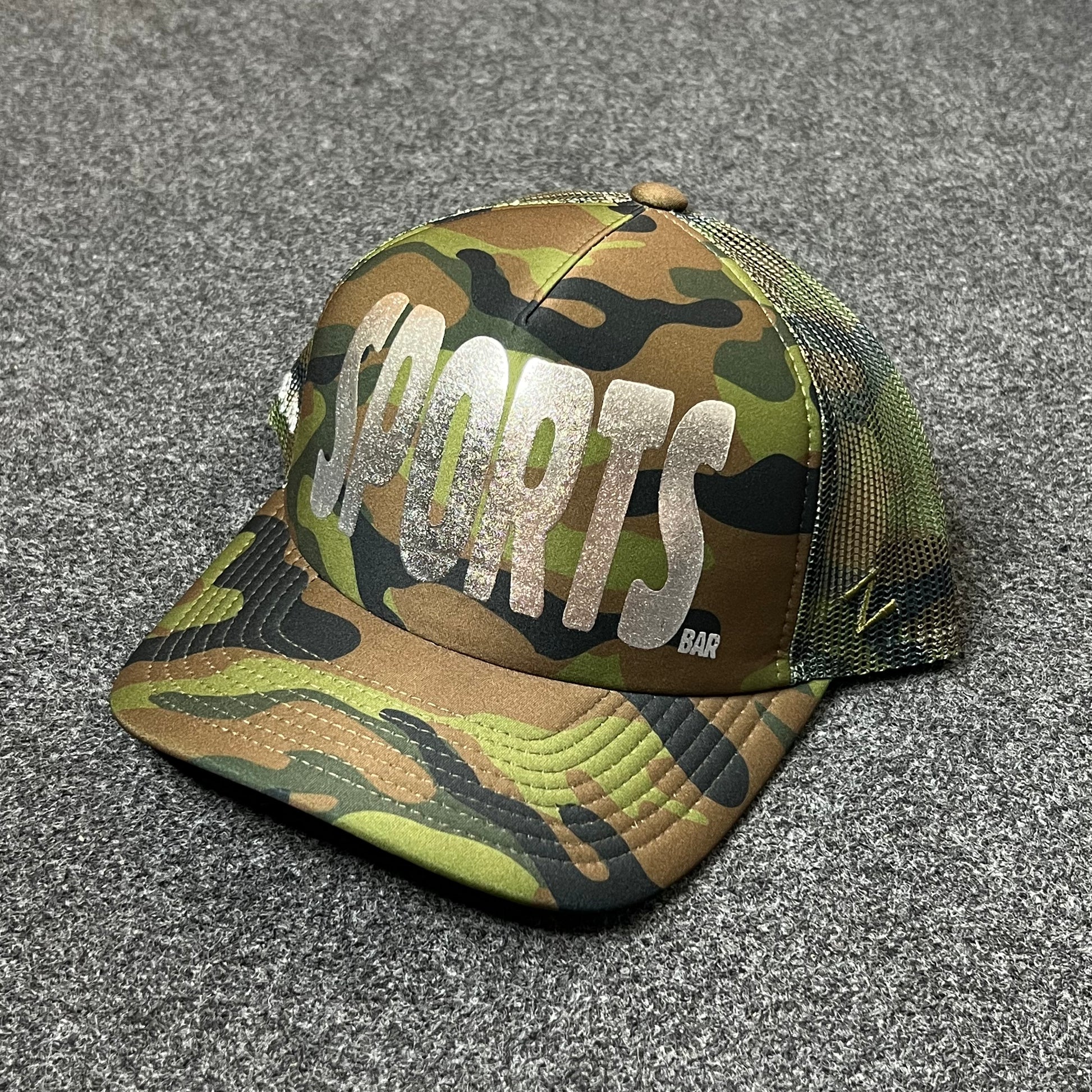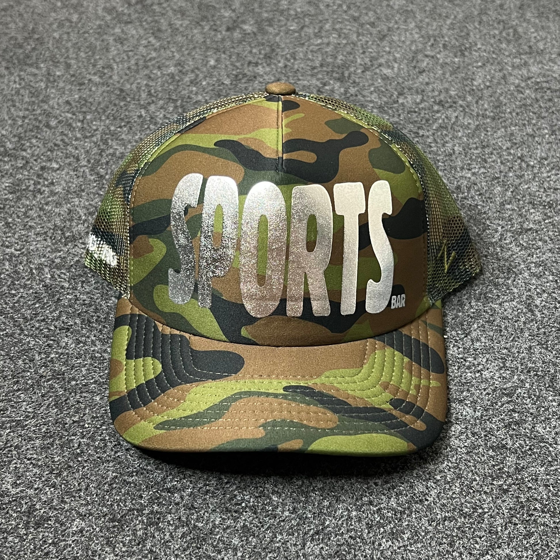 Make a bold statement with the SPORTS Camo Mesh Back Baseball Cap. Featuring a classic woodland camo crown, large distressed SPORTS lettering across the front, and a breathable mesh back, this hat combines rugged outdoor style with casual streetwear energy. Perfect for athletes, fans, and anyone who loves standout headwear.