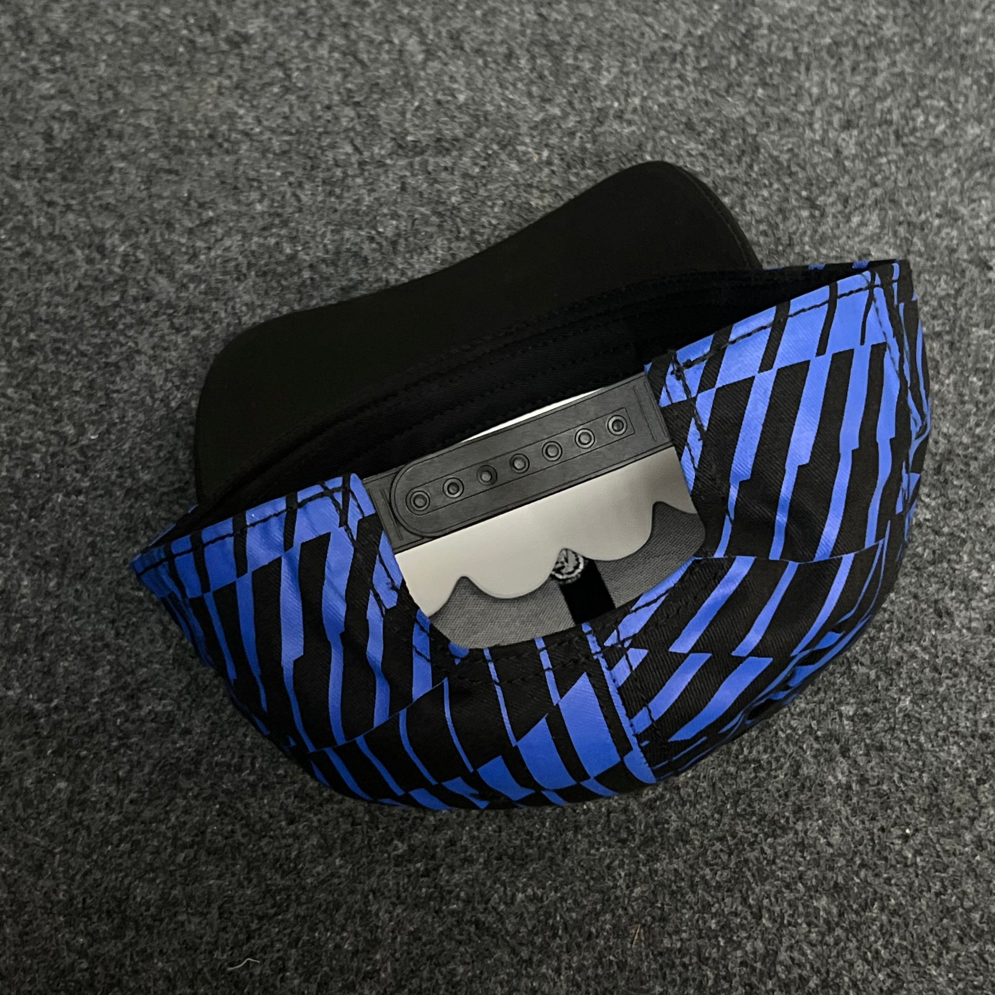 🧢 Structured six-panel crown with eye-catching blue/black geometr