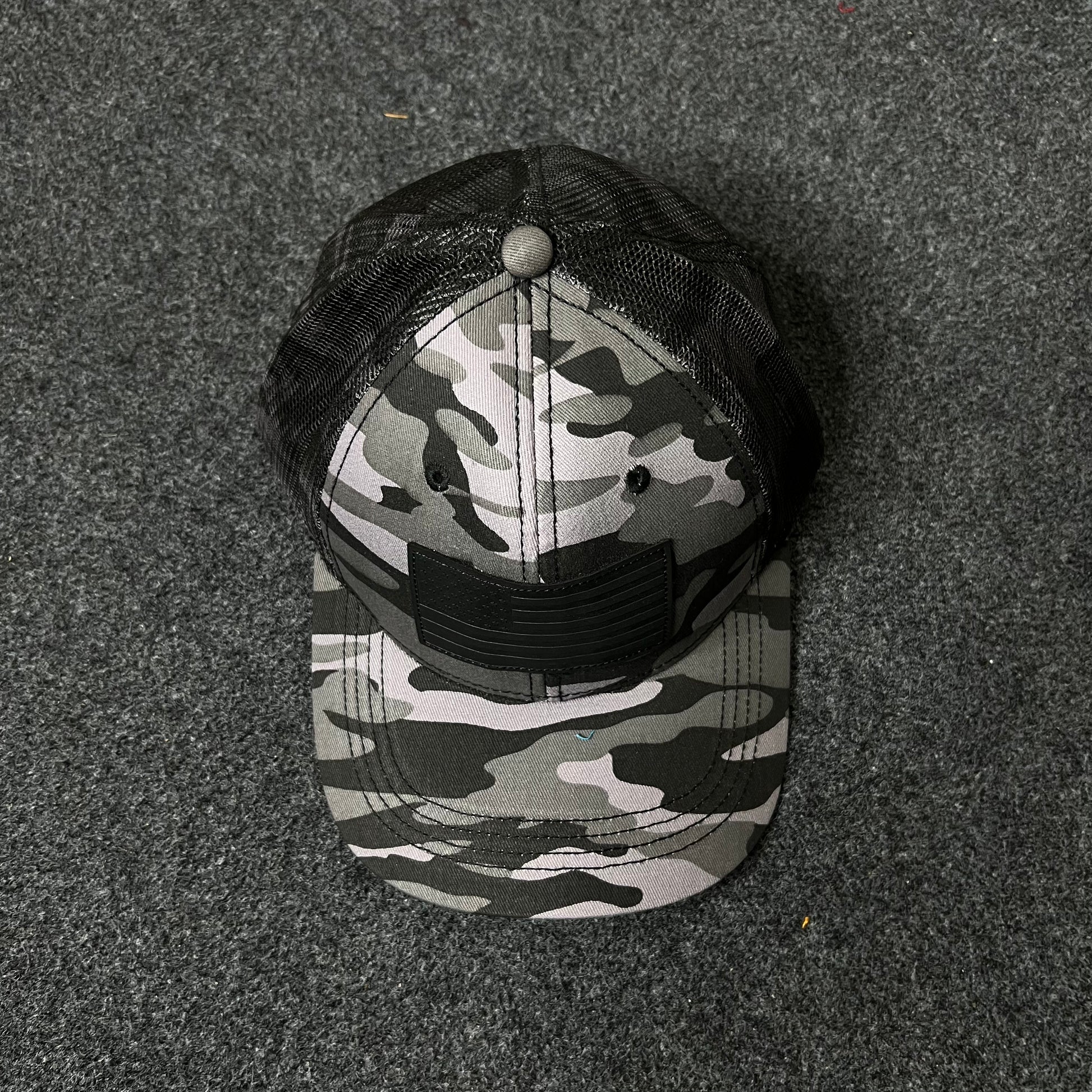 Tactical Camo Trucker Hat – Blacked Out Flag Patch