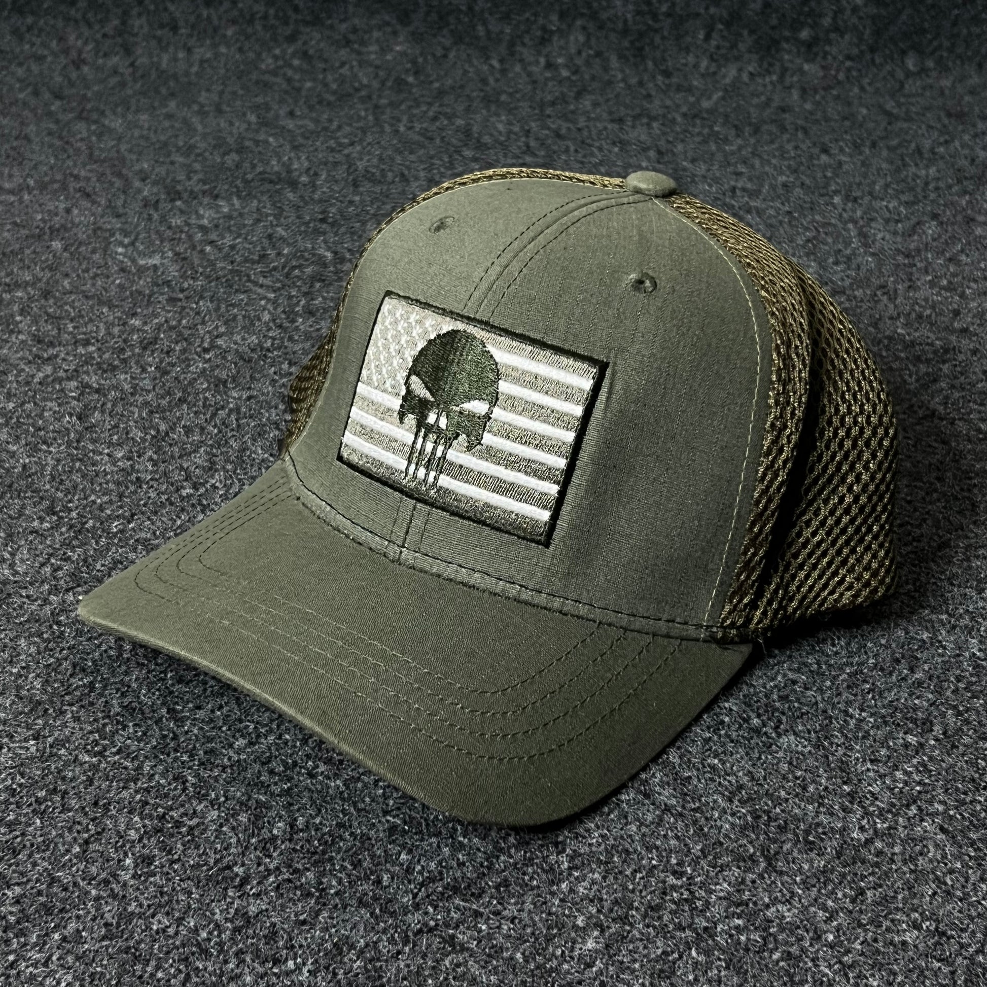 Tactical Punisher Flag Trucker Cap – Olive Green ( M size )