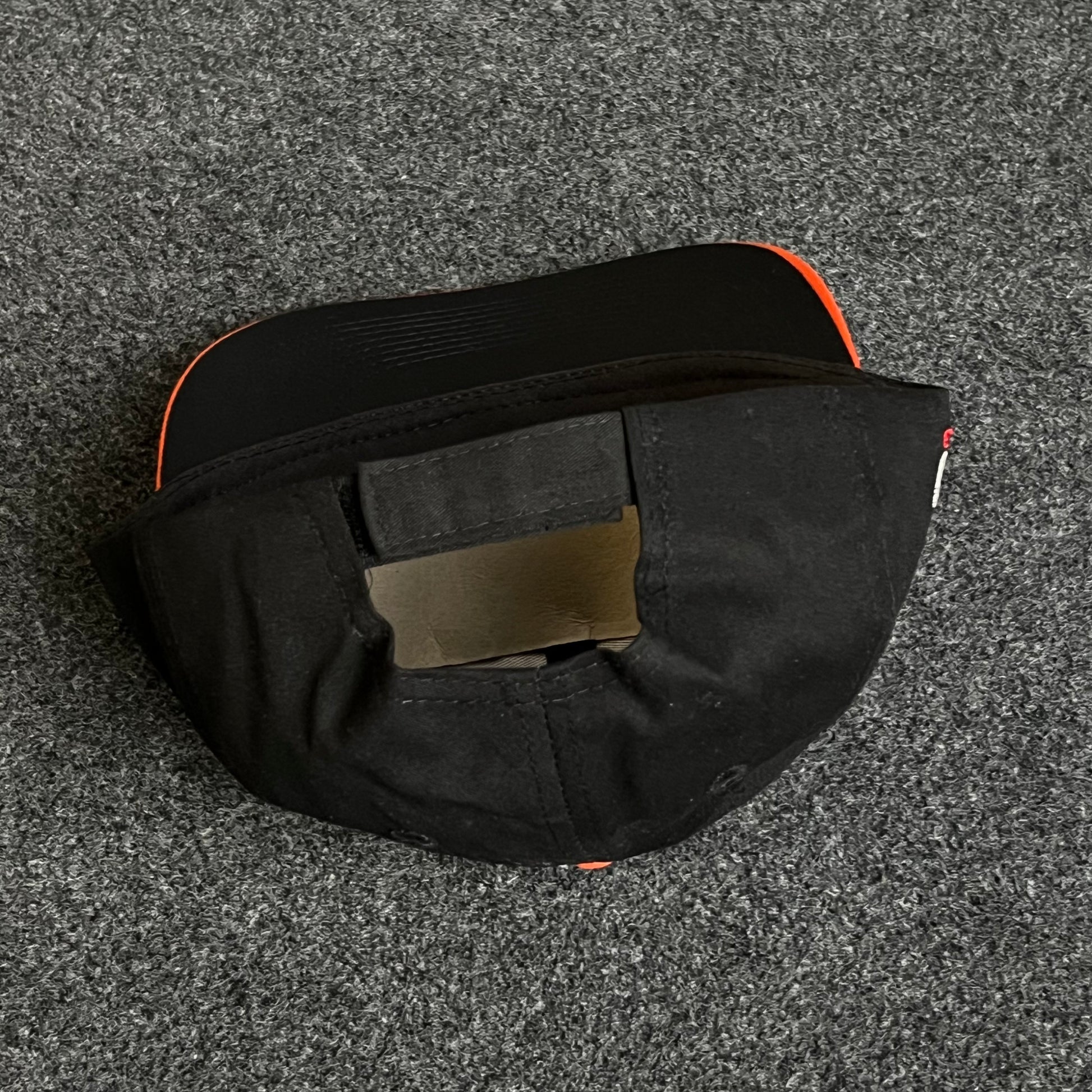 🧢 Black crown paired with a vivid orange brim