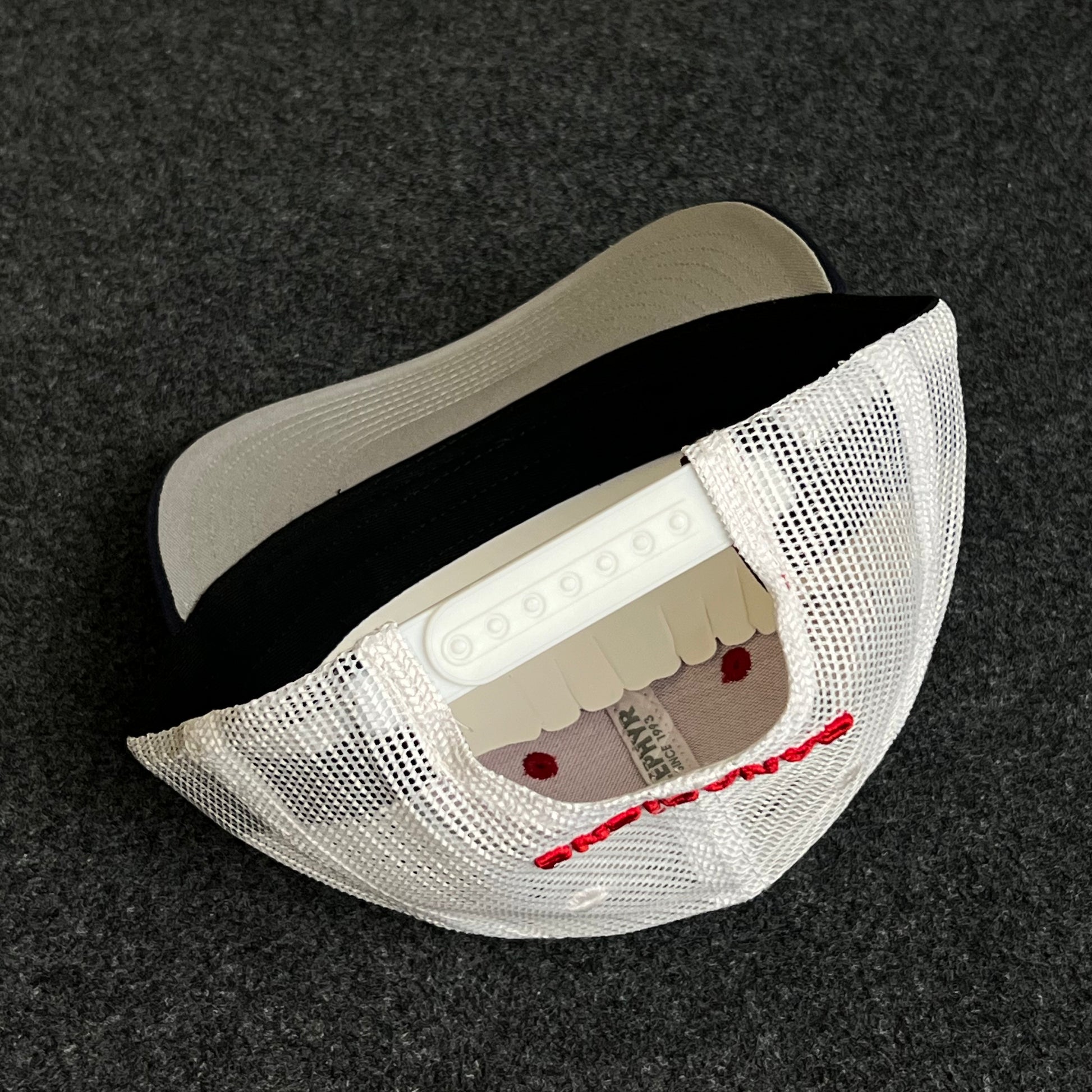 🧢 Red crown with white mesh back for breathability