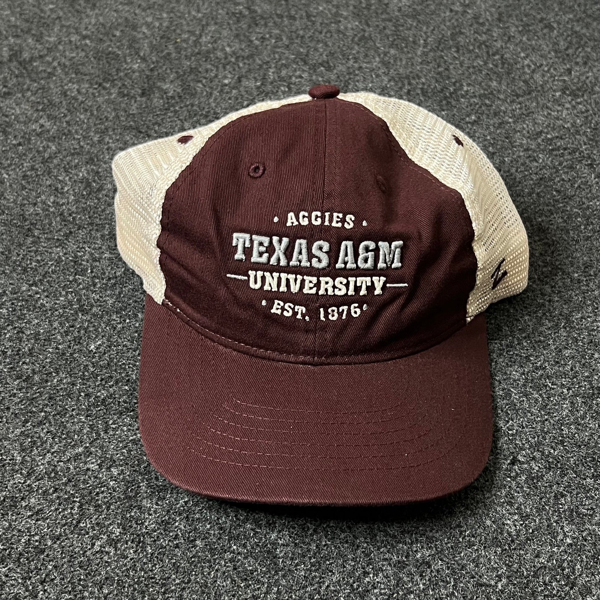 Show your Aggie pride with this Texas A&M University Baseball Hat. Featuring bold embroidered “Texas A&M University – Est. 1876” lettering, this cap is the perfect accessory for students, alumni, and fans. The maroon crown, cream mesh back, and pre-curved brim give it a classic collegiate look.