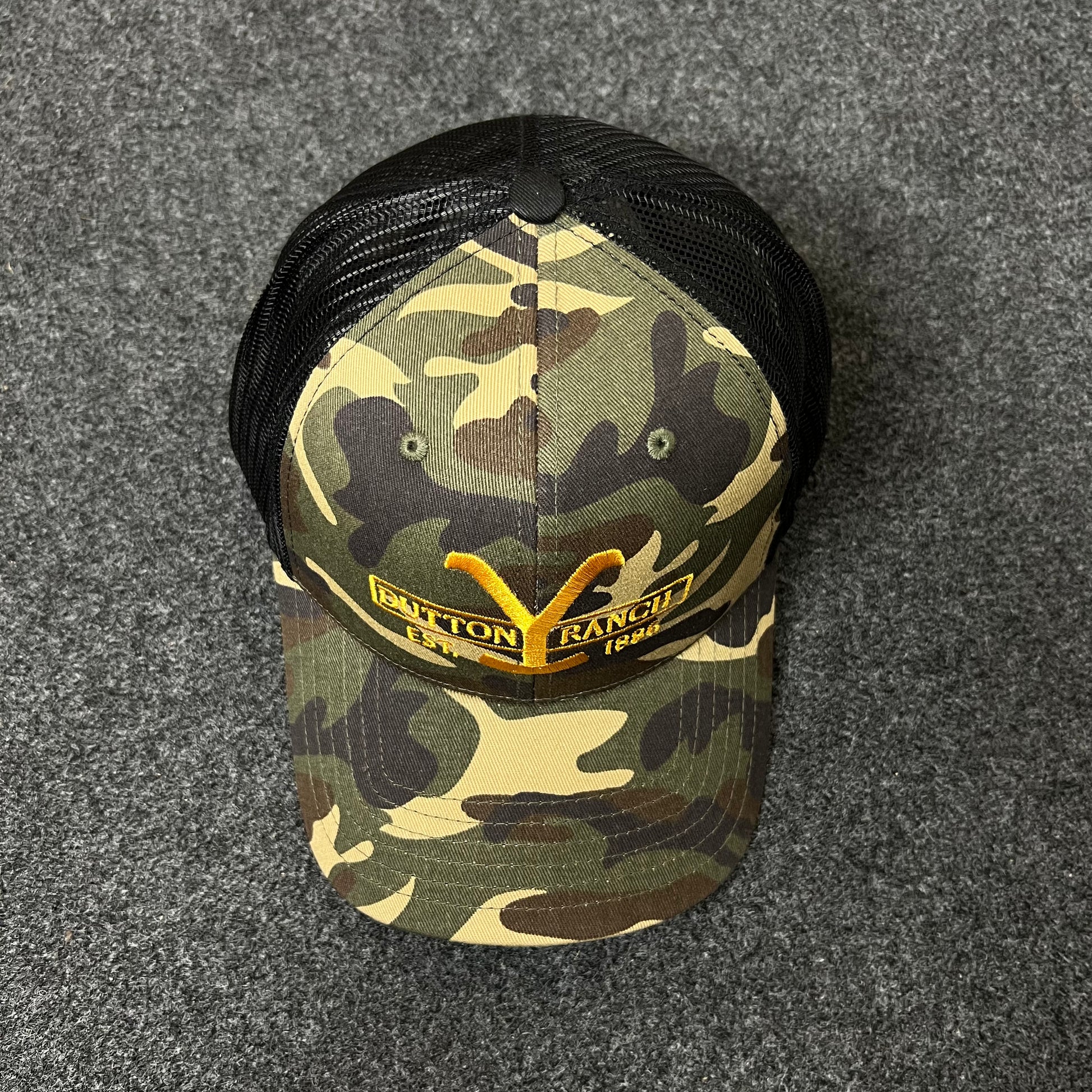 Y Ranch Camo Mesh Back Trucker Hat – Black & Gold